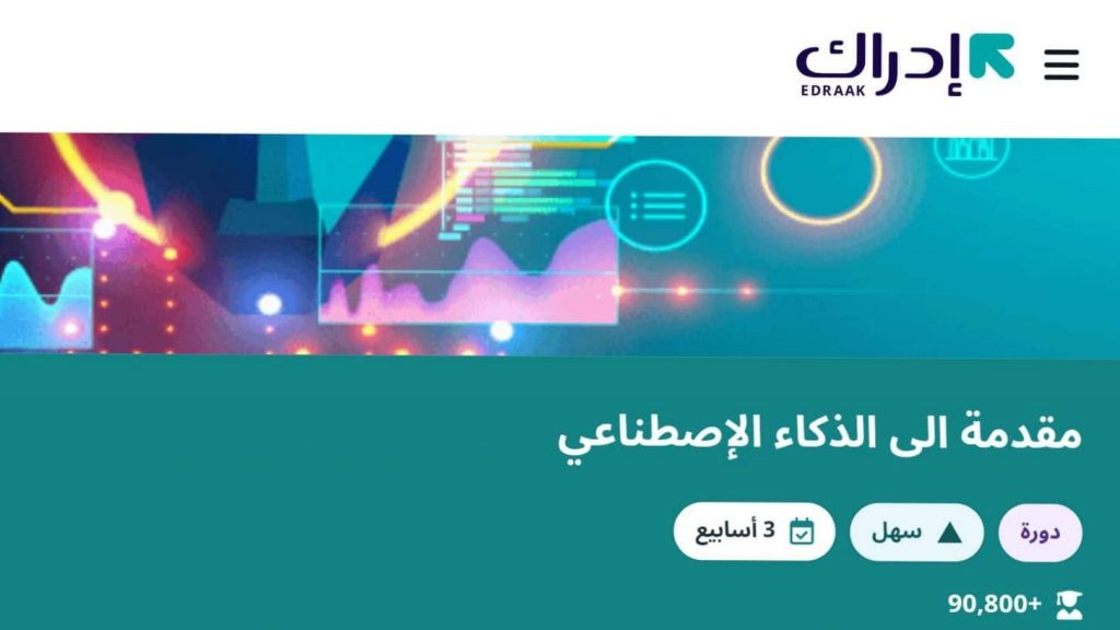 1. إدراك (Edraak) منصة رائعة تقدم دورة تعريفية شاملة للذكاء الاصطناعي. المحتوى باللغة العربية ومجاني تماماً.